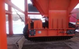 По просьбе заказчика комплекс должен был быть поставлен полностью в собранном виде, но по причине больших габаритных размеров это сделать было практически невозможно. Нашли выход - бункера ушли в собранном виде с установленными на них ленточными питателями, конвейер и площадки обслуживания пришлось везти отдельно.